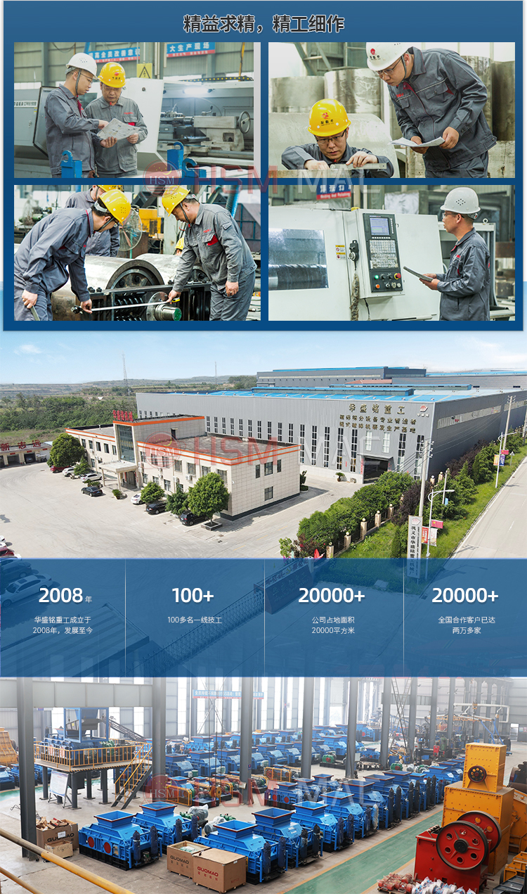 液壓對輥破碎機通過輥輪進行破碎作業。物料由進料口進入輥子之間,通過擠壓作用破碎河卵石,兩輥輪之間有一定的間隙,兩輥輪間隙變大,物料出料粒度變大,在壓緊彈簧的作用下兩輥輪間隙變小,出料粒度變小。通過改變調整間隙,可以控制物料的出料粒度。
